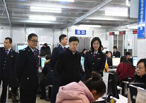 在武昌区国税局调研期间,孟军实地查看区局办税服务厅,与区局负责人、办税服务厅负责人和一线工作人员深入交流,了解大厅拥堵原因、国地税通办、A级纳税人大户室运转、区局改善办税条件的计划和进展等情况,并对区局干部职工的辛勤付出表示慰问和感谢。孟军指出,此次大征期是2018年的首个大征期,且与办税实名制全面推广、增值税新的申报比对办法实施相互重叠,加上前2天是周末,使得此次征期与以往相比难度更高,给国税部门带来的压力更大。武昌区局在现有条件下多措并举,全力应对征期压力,成绩值得肯定。下一步,区局一是要坚持做好国地税通办,进一步方便纳税人。二是要继续加强引导纳税人分时段分流工作,缓和办税高峰期的拥堵。三是要认真分析问题原因,改进完善。