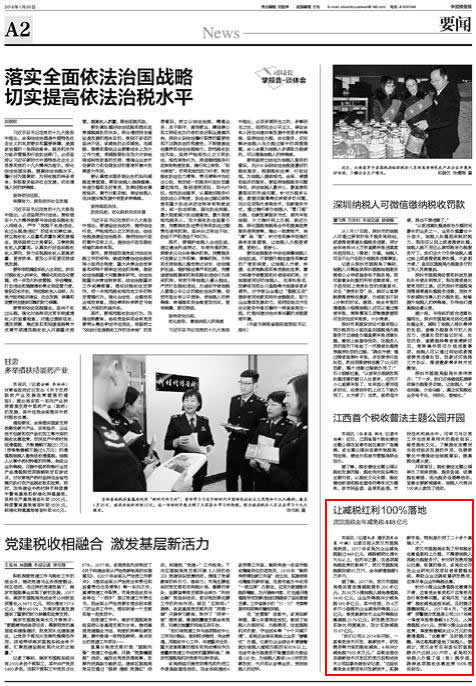 (中国税务报 1月30日 2版)据了解,2017年,武汉市国税局落实营改增减税降负200多亿元;为38万小微纳税人减免增值税14.45亿元。企业所得税共计减免税180多亿元,其中包括,为4万多户小型微利企业减免所得税2.22亿元;享受高新技术企业所得税优惠减税21.79亿元;研发费用加计扣除比例提高后,加计扣除减税15.07亿元。