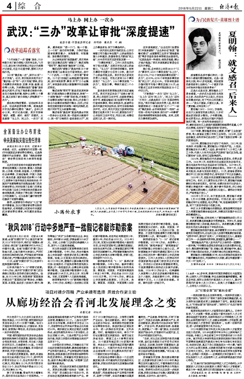 | 【经济日报?中国经济网】马上办 网上办 一次办 武汉“三办”改革让审批“深度提速” | |