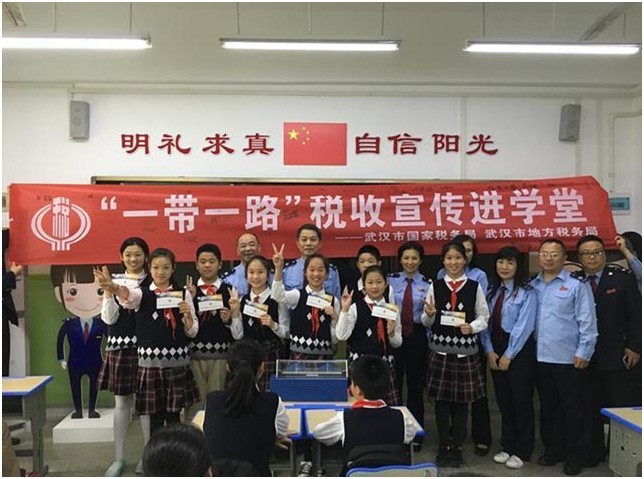 “2018年4月是全国第27个税收宣传月,今年的税收主题是‘优化税收营商环境,助力经济高质量发展’”。武汉市国税局总经济师周光春介绍:“树立税收法治意识要从娃娃抓起,播种税收的种子,收获诚信纳税的信念。开展‘一带一路’税收宣传进校园活动,为小学生营造‘一带一路’的教育文化氛围,传播中华传统文化,既让小学生提升国际视野,又增进小学生对税收服务‘一带一路’的认知程度,帮助他们从小树立‘依法纳税、诚信纳税’的意识。”