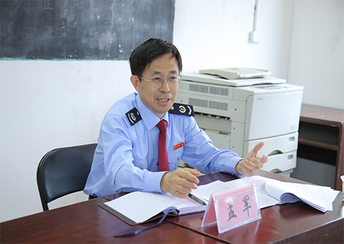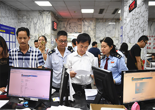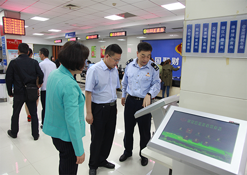 图为孟军局长在武昌区局办税服务厅开展调研检查