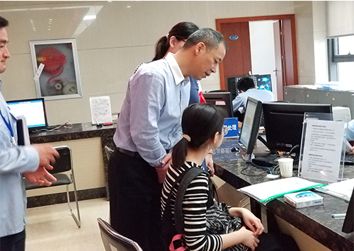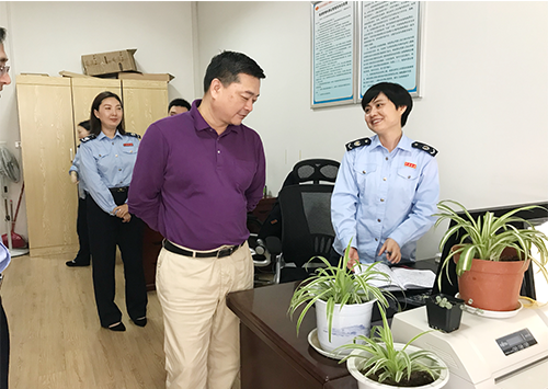 图为徐良敏总会计师调研江夏区局办税服务厅